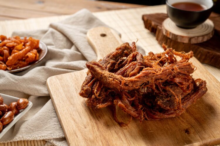 嚴選新鮮上等豬肉,精挑細選合適肉質部位,製成較粗條形狀,並加入獨家香料滷汁,長時間的滷煮入味,散發出濃濃的古早味,厚實的肉質纖維軟硬適中,充斥著鮮美鹹香的滋味,讓您一口接著一口,意猶未盡!