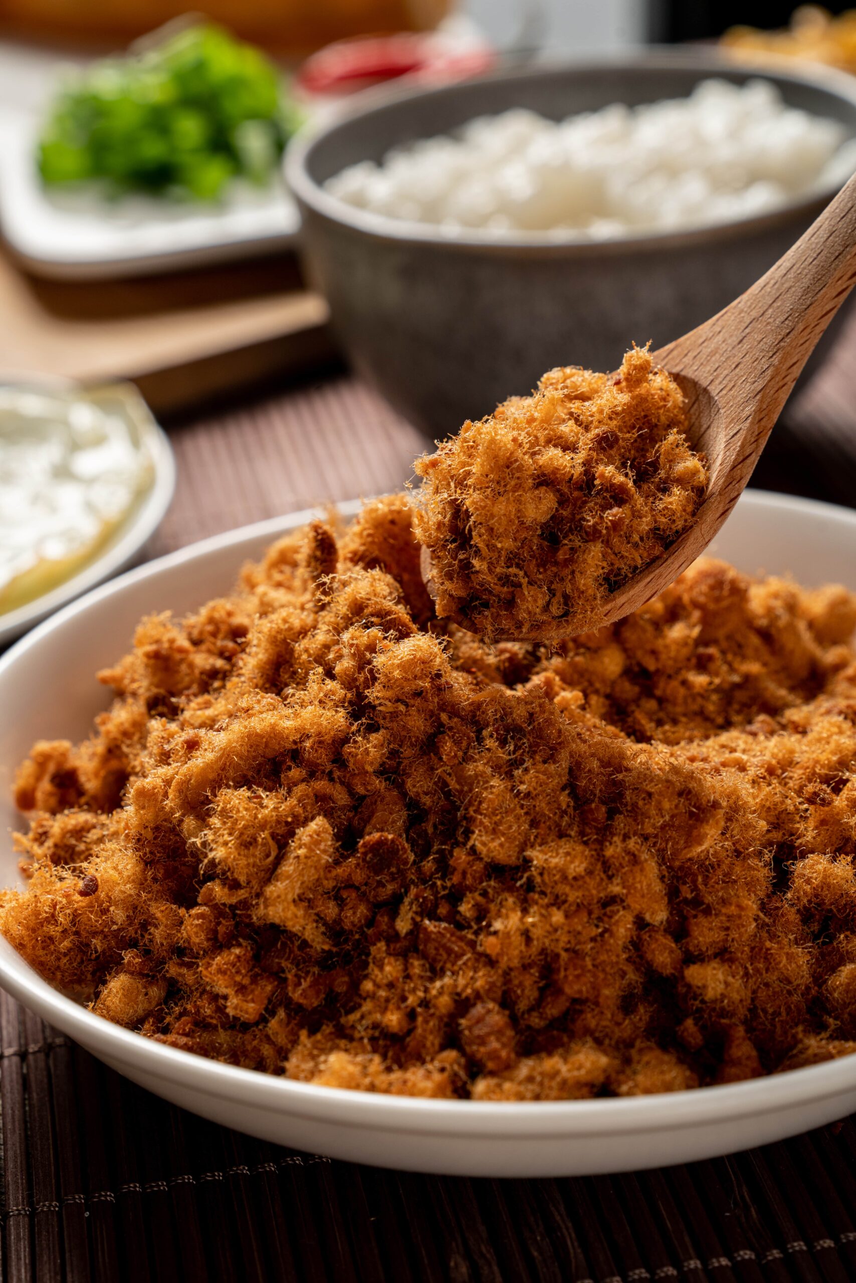 2.美味秘訣:以高級純釀造醬油與獨家配方調味,再經過低溫焙炒製程,產製出酥鬆口感與香氣逼人的美味肉鬆。